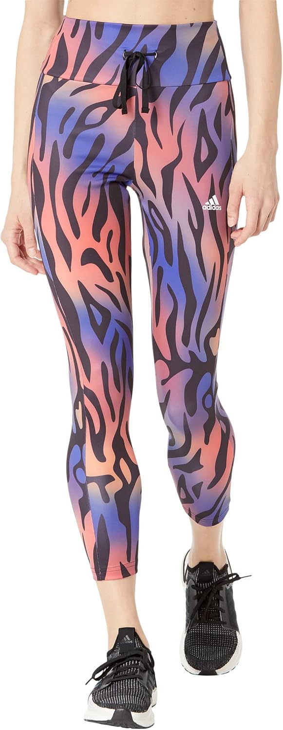 Hunt down a dead-lift PR in these adidas tights with an allover tiger-stripe print. The stretchy build hugs your legs for a sleek and flattering look, and AEROREADY absorbs moisture so you stay dry while you train. A waistband pocket holds small essentials.