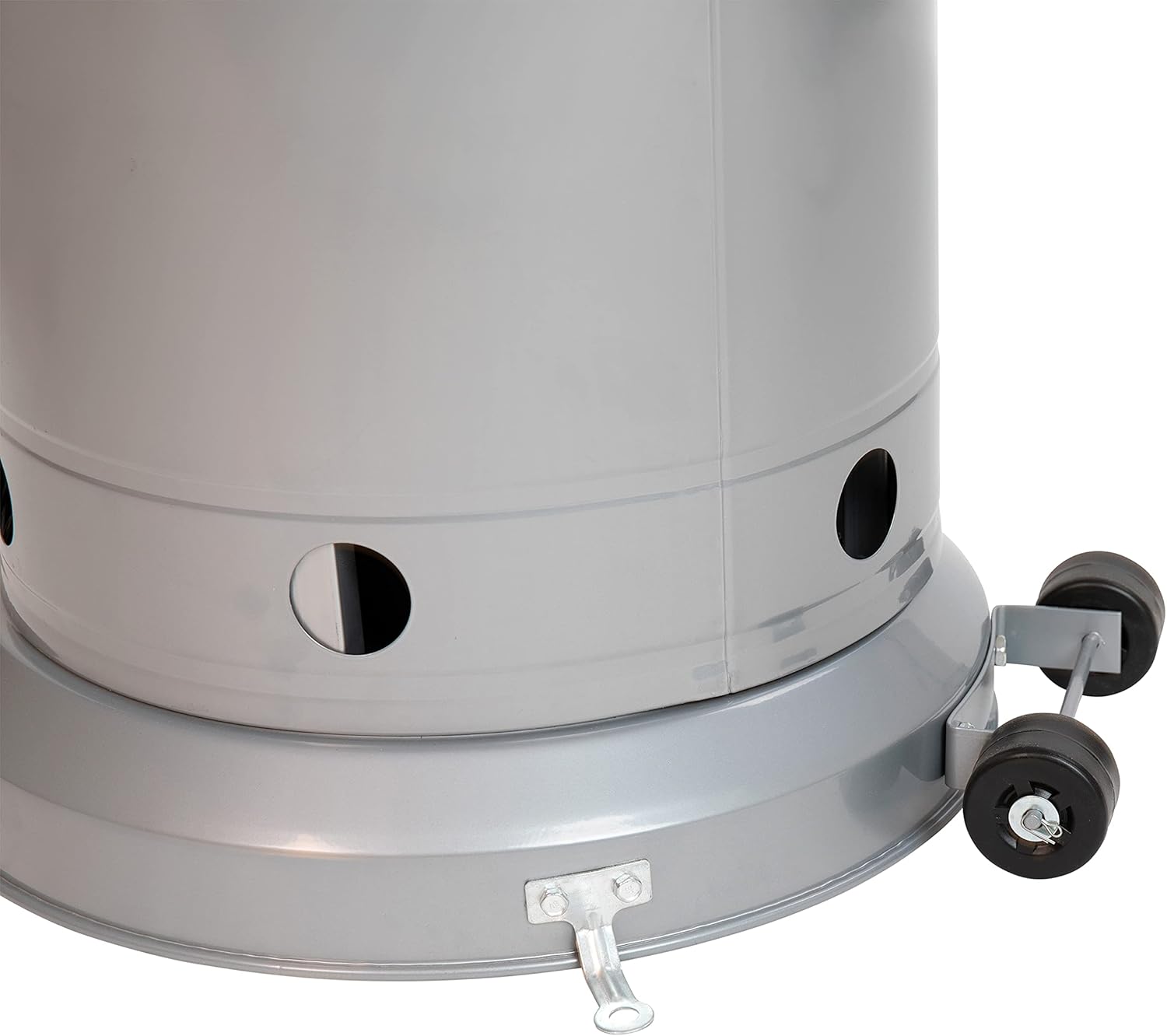 Extend the amount of time you can use your outdoor leisure and dining areas at your home or business when you purchase one or more of this 40,000 BTU outdoor patio heater. The improved appearance of today's outside heaters will complement your outdoor furnishings and will lend a wow factor to open-air commercial events. This silver propane patio heater has a 9-16 foot heat radius that quickly chases away the chill from dropping temperatures. The attached wheels allow the heater to be easily moved from place to place as needed and 3 included anchors can be affixed to your patio or decking (wood or concrete screws not included) to keep the unit stable and secure once in place. Made from premium stainless steel, and boasting metal screw construction, this outdoor heater is built to last and will be a welcomed addition to your outdoor living areas. A 20 lb. LP propane cylinder fits snugly in the tank housing and will provide hours of warmth for your guests. Gather a phillips screwdriver and the included open ended wrench and have your new radiant heating appliance put together in under 90 minutes. Pair this traditional outdoor heater with our set of 4 all-weather poly resin wood adirondack chairs for a complete setup.